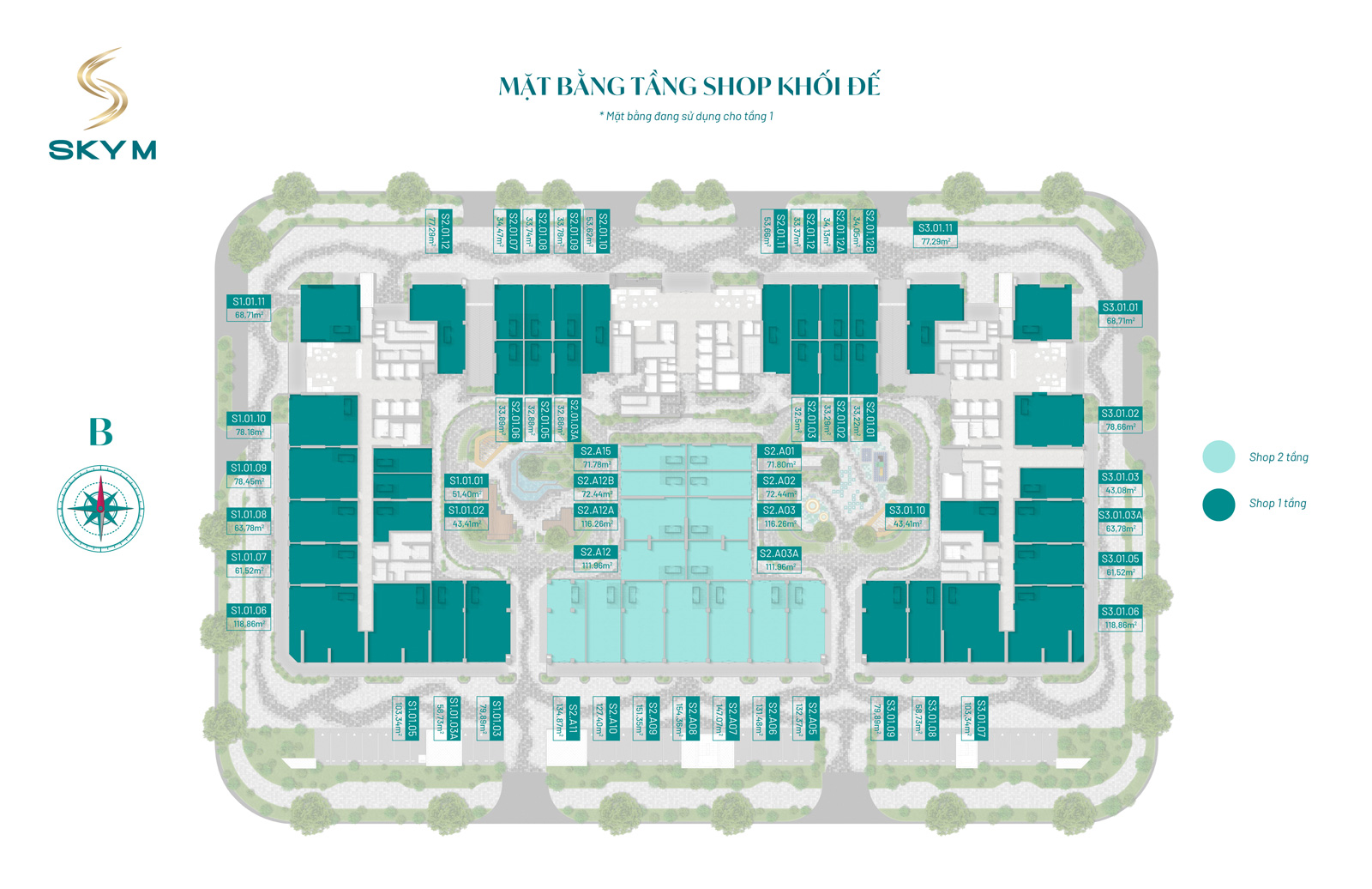 - TẦNG 1-2: Shop khối đế & Tiện ích